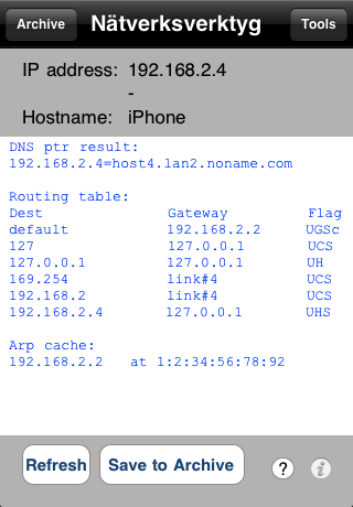 Nätverksverktyg is a tool for troubleshooting of networks (3G and/or WiFi) from the device.